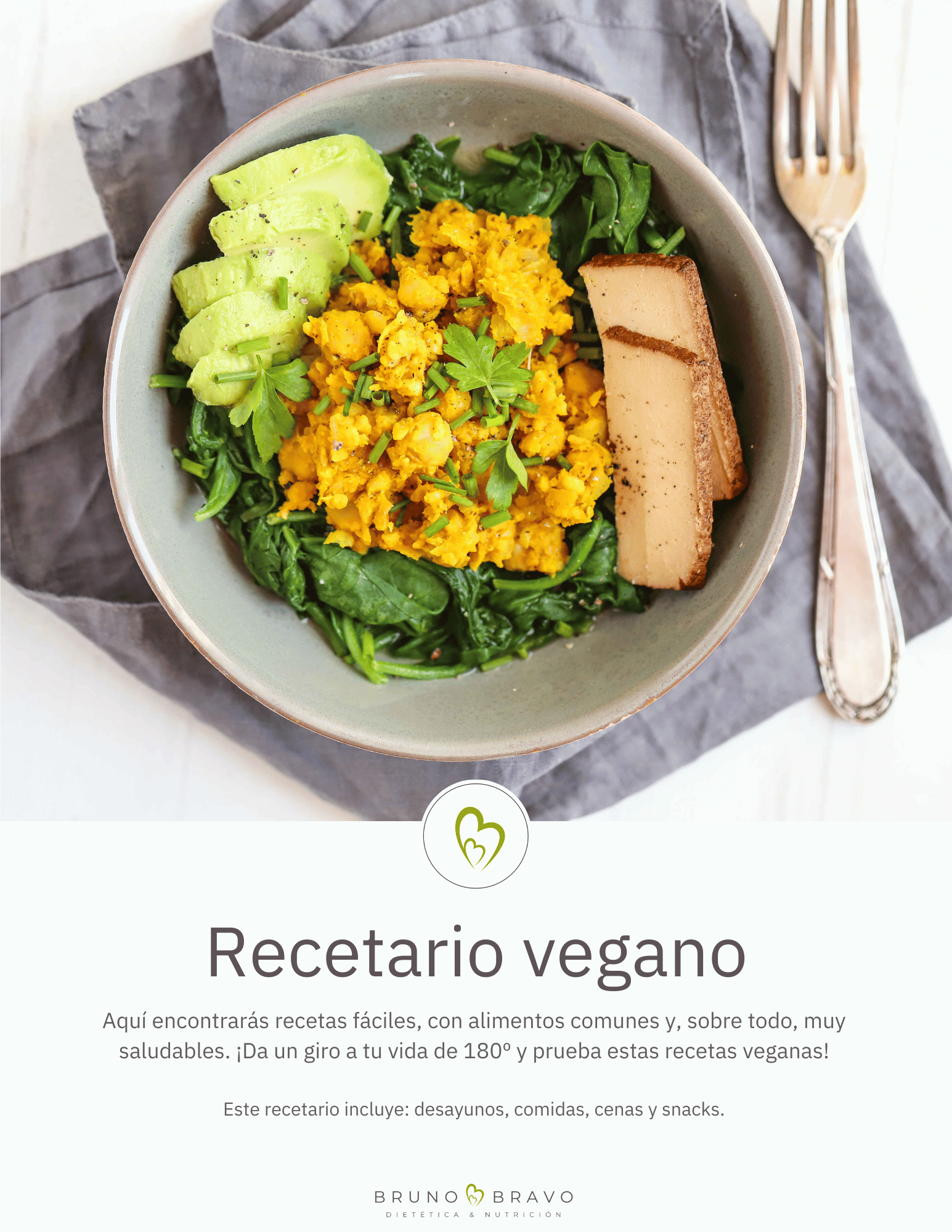 Platos veganos prácticos, nutritivos y llenos de sabor. Con 88 páginas, este recetario te ofrece recetas sencillas con alimentos al alcance de todos, además de fotos de alta calidad, lista de la compra, información nutricional de cada receta y menús semanales.